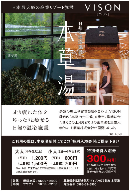 | 住所 | 多気郡多気町ヴィソン672番1 本草湯1 【地図】 |