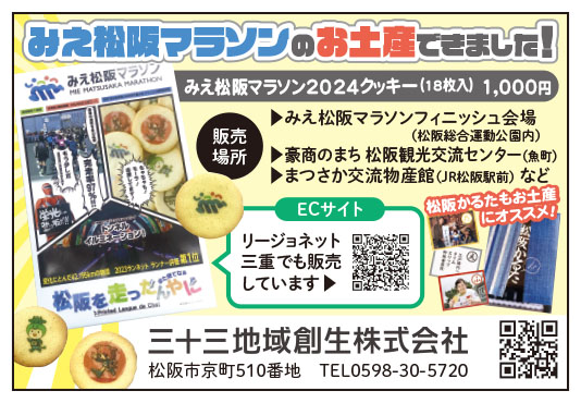 ランナー証明書を提示する お土産 三十三地域創生 店名 三十三地域創生 住所 松阪市京町510番地【地図】 電話番号 0598-30-5720 URL https://33sousei.com/ その他のリンク リージョネット三重